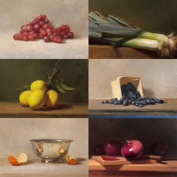 Each week, Dale will record a demo and discuss techniques as he works. After watching the demo, students will work on compositions based on the weekly theme to complete a four-hour still life painting from start to finish. The series will examine how to combine a practical understanding of color, values, edges, and paint handling (without second guessing) with the goal of completing an aesthetic, naturalistic painting. There will be a strong focus on sound drawing, composition, and shape design. Artists are encouraged to participate in the theme and embrace the weekly idea as simply or complexly as they desire.