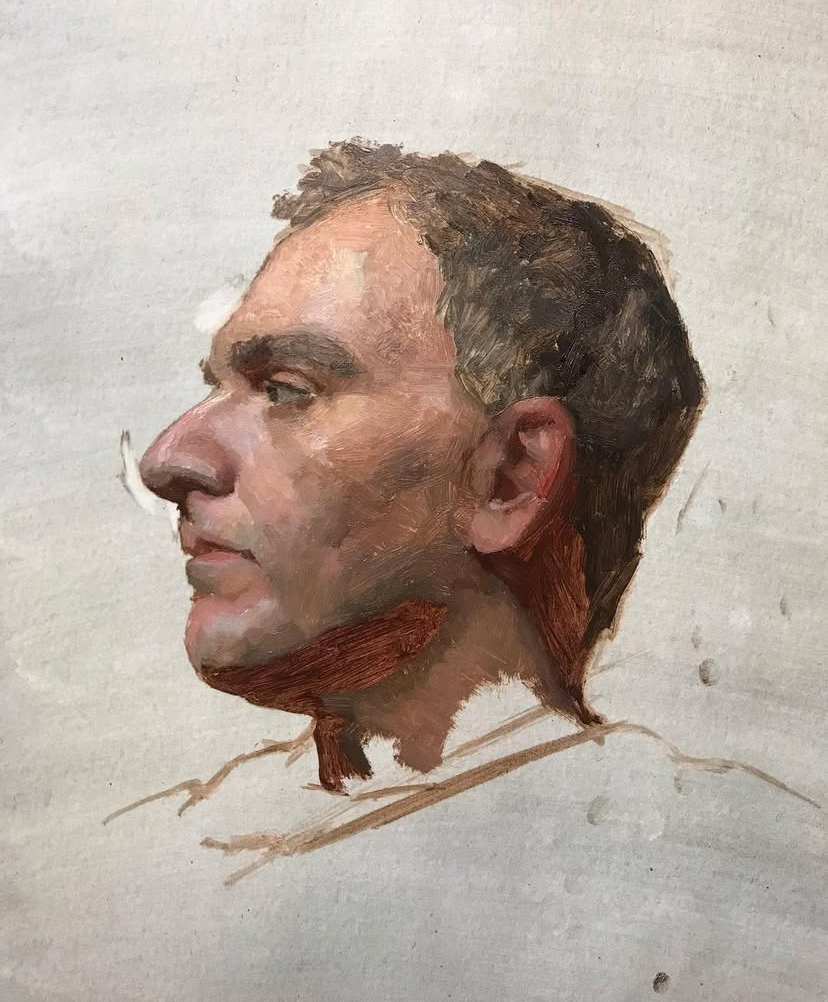 In this class, artists will paint a one-day alla prima (wet into wet) portrait sketch in oil paint. The model and artist position will change for each class. The challenge will be for the artist to capture proportion, likeness, form and color in a 4-hour period. The first few sessions artists will learn to use a monochromatic palette followed by a full color palette through the remainder of the course.